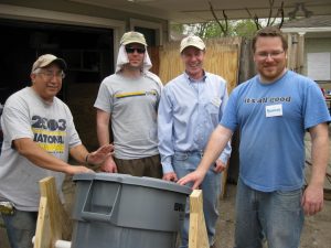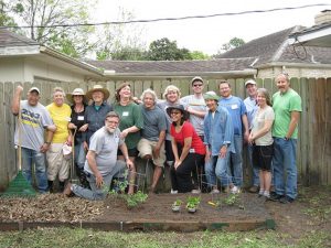 More akin to the old “Barn Raising” in the old days where the Community all showed up to help build a neighbors barn. We decided to do so and also joined the group Transition Houston. This opened a whole new world for us and the love of gardening thus took hold in our lives. We built three beds and some compost bins and we have since added two more beds and additional growing space against the fence by the pool.